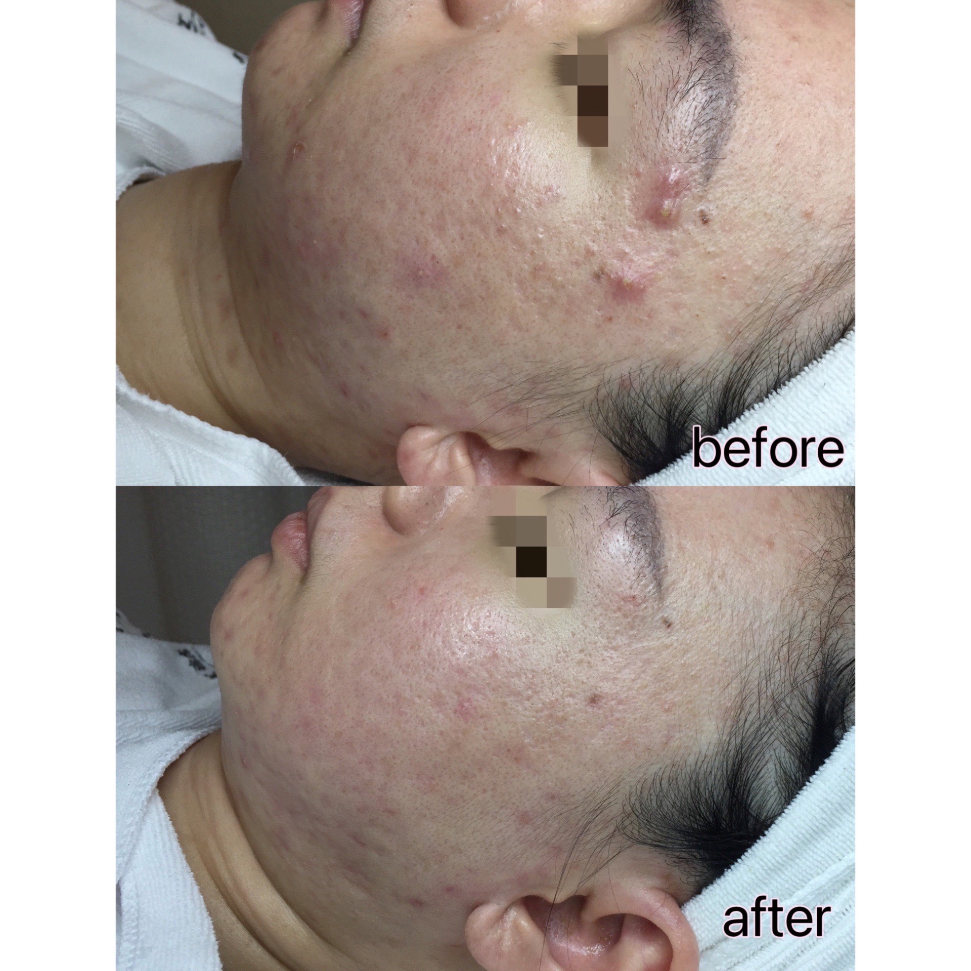 她來的那天,額頭、雙頰、下巴一路到脖子有多顆紅腫囊腫痘,間隙還藏著硬悶粉刺。