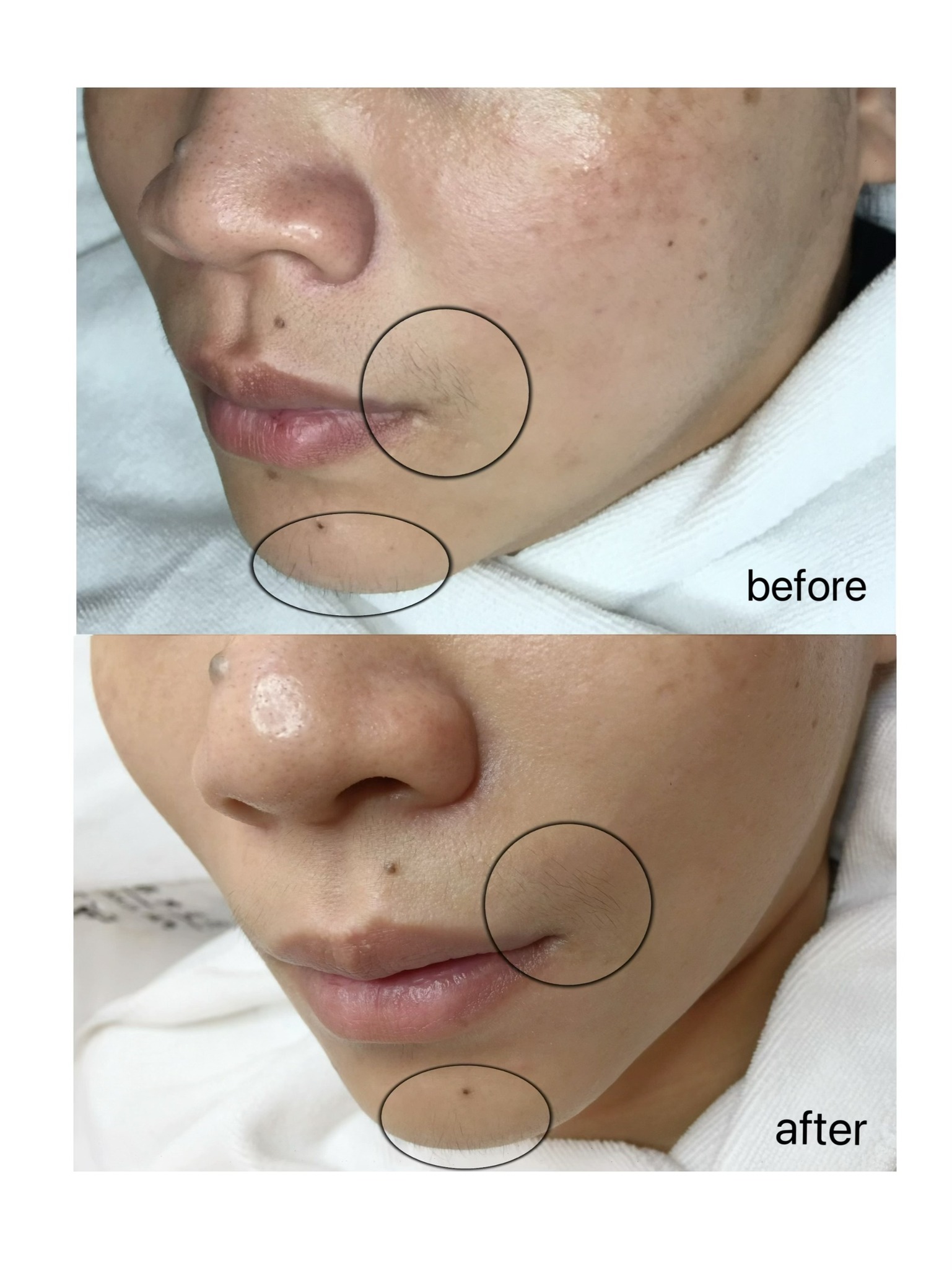 這位女孩選擇定期進行冰肌除毛療程。隨著次數累積,唇週的毛量明顯下降、毛髮變細,現在幾乎看不見原本那些惱人的小毛毛。她說,照鏡子時最直觀的感受是「乾淨、透亮」,不需要再顧慮唇週的陰影或反光,小細節也變得更精緻。